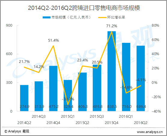 2016年第2季度中國跨境進(jìn)口零售電商市場(chǎng)規(guī)模統(tǒng)計(jì)分析