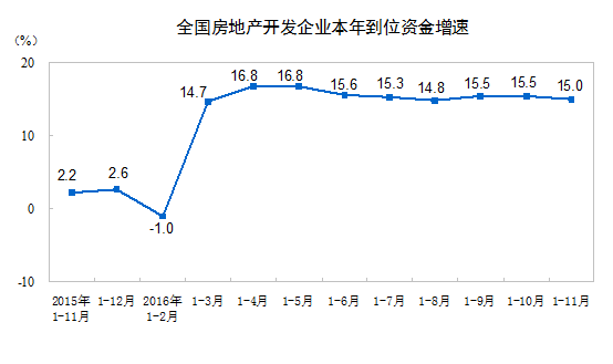 2016年1-11月份全國房地產開發投資和銷售情況