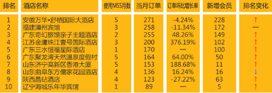 注:新秀酒店是指使用MSS系統(tǒng)6個月內的酒店,排名依據為當月訂單量