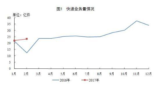 2017年2月中國快遞業務量完成23.4億件