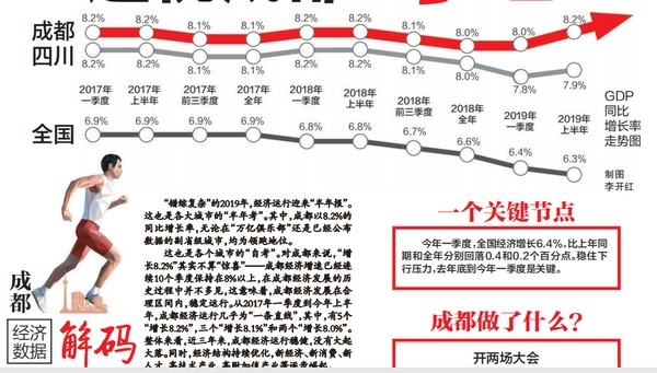 “錯綜復雜”的2019年,經濟運行迎來“半年報”。這也是各大城市的“半年考”。其中,成都以8.2%的同比增長率,無論在“萬億俱樂部”還是已經公布數據的副省級城市,均為領跑地位。